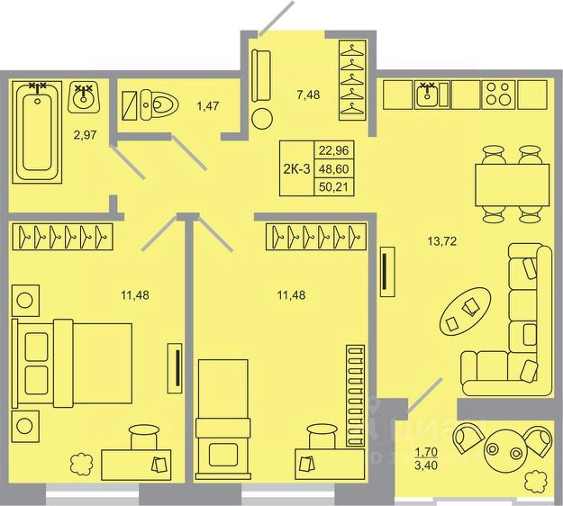 Продаётся двухкомнатная квартира в жилом комплексе ЦДС "Новые Горизонты", участок 3, Корпус 11 ДОМ СДАН и заселен! При покупке квартиры без участия агентов дарим сертификат новосела в магазин ХОФФ на сумму 50 000 рублей. Им можно оплатить не более 15% от суммы покупки. Квартира с чистовой отделкой: на полу ламинат, на стенах обои под покраску, установлены межкомнатные двери, в санузлах везде положена плитка, установлена вся сантехника! В непосредственной близости от нового квартала уже построены детский сад и школа для 1383 учеников. Прямая продажа от застройщика Группы ЦДС! Номер в базе ЦДС: 100866