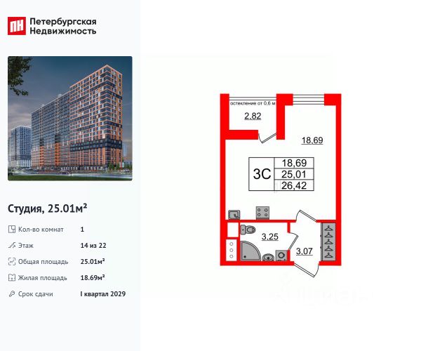 Продаётся 1-комнатная квартира в сданном доме (Графская, 6к3 (Корпус 2)), срок сдачи: I-кв. 2024, общей площадью 37.9 кв.м., на 14 этаже. Расположение, транспортная доступность