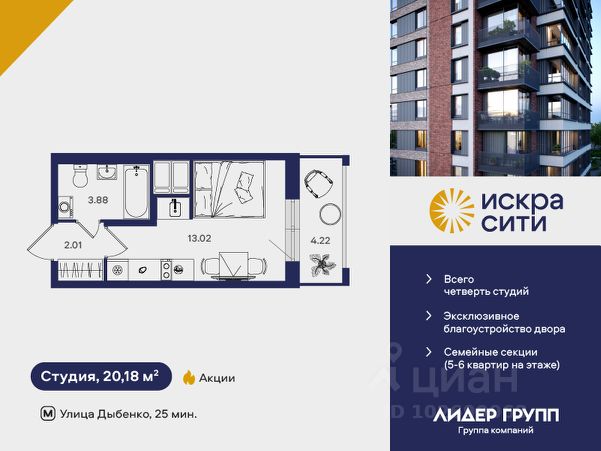 "ИСКРА-Сити" — жилой комплекс комфорт-класса на 777 квартир, ориентированный на семейных покупателей. В проекте очень мало студий. Дом возводится на правом берегу Невы, в Невском районе Санкт-Петербурга, между улицей Тельмана и переулком Челиева - в створе Искровского проспекта. Это давно сложившийся район без высотной или уплотнительной застройки. Прогулка до ближайшей станции метро "ул. Дыбенко" займёт всего 25 минут. Отлично развито транспортное сообщение. Рядом гипермаркет "Максидом". 4 корпуса переменной этажности от 13 до 18, объединены подземным паркингом. На первых этажах будут располагаться магазины, пекарни, аптеки и салоны красоты, есть собственный детский сад.Квартиры с угловым остеклением, собственными кладовыми. Большие ванные с окном и просторные балконы. Территория двора закрыта и благоустроена