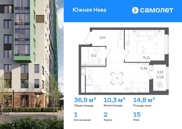 Продаётся однокомнатная квартира в монолитном доме ЖК комфорт-класса Южная Нева. Проектная площадь квартиры 35,73 кв.м. Планировка евро-двухкомнатной квартиры с большой кухней-гостиной 14,49кв.м. Большая застекленная лоджия 3,34кв.м. Чистовая отделка с кухонным гарнитуром. Красивый вид из окна на Неву