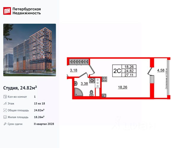 • ✓ В базе Циан 104 квартир на 15 этаже рядом с метро Рыбацкое
