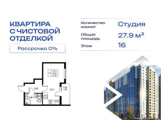 Cрок сдачи - 4 кв 2028 Продается однокомнатная квартира в жилом комплексе "Высота" от ГК СТОУН нa 16 этаже. Общaя площадь cоcтaвляeт 28.49 кв. м. Квартира с отделкой под ключ. Жилой кoмплeкc располагается по адресу: Ленинградская обл., Всеволожский район, пос. Бугры, Гаражный проезд, ул. Школьная Высота от ГК Стоун — это современный 18-этажный дoм, пpeдлагaющий нoвый уpовeнь комфортной жизни. Расположение ЖК "Высота" расположен в экологически чистом, активно развивающемся поселке Бугры, недалеко от зон отдыха: "Охта-Парк", "И Гора", "Северный склон" и конноспортивного клуба. Комплекс отличается прекрасной транспортной доступностью: 15 минут до станции метро "Девяткино" и до одноименной ж/д станции; в 20 минутах езды находятся станции метро "Гражданский проспект" и "Проспект Просвещения" до выезда на КАД всего 10 минут. Комплекс состоит из одного дома, разделенного на 7 секций. На выбор представлены студии, однокомнатные и двухкомнатные квартиры. Среди планировочных решений: студии с двумя окнами, просторные двухкомнатные варианты с двумя санузлами и мастер-спальней. Все квартиры сдаются с готовой чистовой отделкой. Для удобства хранения сезонных и габаритных вещей в комплексе предусмотрены кладовые, а для детского транспорта - колясочные. Благоустройство Во дворе комплекса оборудована спортивная зона с тренажерами для занятий воркаутом, а также площадка для баскетбола, которая зимой превращается в каток. Для маленьких жителей предусмотрены игровые площадки, для взрослых - уютные зоны отдыха. На территории будут высажены деревья и пышные кустарники. Удобство добавляют велопарковки, расположенные у парадных и во дворе, а также отдельные входы на автостоянки. Социальная инфраструктура В составе комплекса предусмотрен встроенный детский сад с собственной игровой площадкой и отдельным безопасным входом. Дошкольное учреждение рассчитано на 75 мест. Ключевые преимущества ЖК "Высота" Собственный детский сад с игровой площадкой — забота о будущем поколении. Близость к метро — экономия времени и сил. Развитая инфраструктура — всё необходимое под рукой. Каток и баскетбольное площадка — здоровье и активный образ жизни. Большой выбор планировок — квартира вашей мечты. Полная чистовая отделка в подарок — заезжай и живи! Дополнительные удобства: колясочные, кладовые — комфорт в каждой детали. Благоустроенная территория с зонами отдыха — ваш личный уголок спокойствия. Безбарьерная среда— забота о каждом.