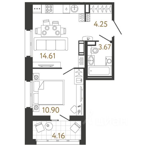 - Раздельный санузел - в современных однокомнатных квартирах редкость. А ведь это удобно!