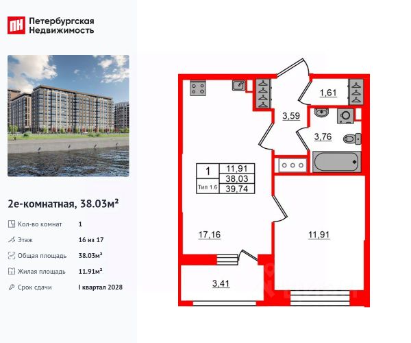 Цена со скидкой до 30% в прямой продаже от застройщика — только в этом месяце. На апартаменты действует беспроцентная рассрочка. Роскошные виды на Неву. 1-к апартамент в комплексе класса бизнес-лайт Зум на Неве на 16-м этаже. Общая площадь 34,51. Без отделки. Зум на Неве расположен в новом месте силы рядом с центром города на первой линии Октябрьской набережной в Невском районе, всего в 7 км от исторической части Санкт-Петербурга. Большой выбор эргономичных и максимально продуманных планировок позволит каждому найти вариант по душе. Панорамные виды на Неву, благоустроенные дворы, детская игровая комната, подземный паркинг, коммерческие зоны на первом этаже, это и многое другое делает Зум на Неве идеальным местом для жизни. Особенности: - Панорамные виды на Неву и город; - 10 мин. до Парка Строителей, 15 мин. до Лондон-молла, Ленты, Максидома, 15 мин. до метро "ул. Дыбенко", 12 мин. до КАД, 10 мин. до центра; - Единая архитектурная концепция. Сдержанные и монументальные фасады в неоклассическом стиле; - Парадный лобби для жильцов. Единый вход в комплекс с администратором, зоной ресепшн и охраной, зоной для бесконтактной доставки посылок и еды; - Подземный отапливаемый паркинг с доступом из парадной; - Доступно 3 варианта отделки на выбор: черновая, предчистовая (White Box) и чистовая; - Зоны отдыха для взрослых и детей, Wi-Fi-покрытие во дворе и в паркинге, зоны для питомцев, арт-объекты и много другое. В шаговой доступности вся необходимая инфраструктура от детских садов и школ до супермаркетов и салонов красоты; - Все происходящее контролируется видеокамерами, а покой внутренней территории и безопасность ваших детей гарантируется полным отсутствием транспорта во дворах в концепции "без машин".