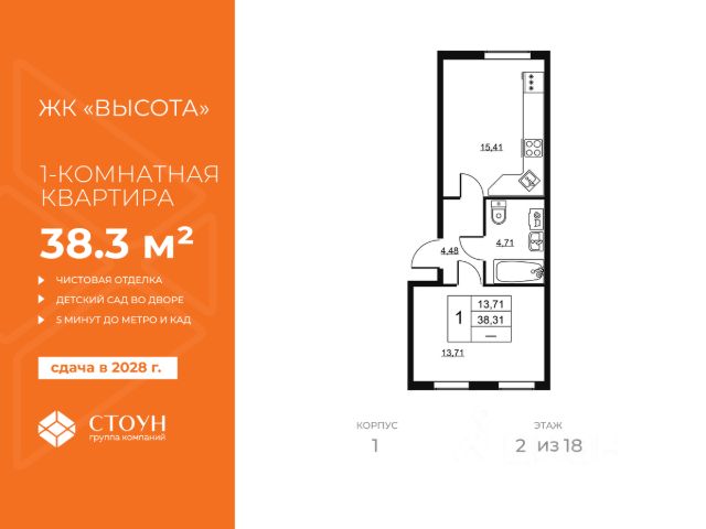 Продаётся 1-комнатная квартира в сданном доме (Нижняя, 5к2 (Дом 5 Корпус 2)), срок сдачи: I-кв. 2024, общей площадью 41.66 кв.м., на 2 этаже. Расположение, транспортная доступность