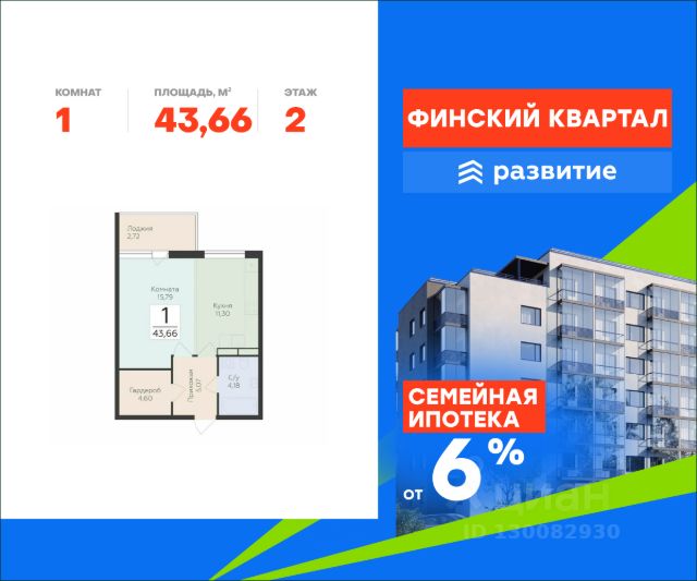 Продается квартира площадью 43.66 кв. м с отделкой white box. Квартира расположена на 2 этаже 7 этажного дома, в жилом комплексе комфорт-класса "Финский Квартал". "Финский квартал" - это уникальный проект комфорт-класса для тех, кто хотел бы жить на природе, но при этом находиться вблизи Северной столицы. Расположенный в окружении одного из самых крупных парков Ленобласти - Лахтинского, проект предлагает своим жителям доступную инфраструктуру, комплексное благоустройство территории, 6 секций переменной этажности с современной архитектурой, которая гармонично дополнит район и будет радовать проживающих еще много лет. Найдите свою идеальную квартиру в ЖК "Финский Квартал"! Расположение Пешком: - 5 мин. до детского сада и супермаркета; - 8 мин. до остановки "Зеленая улица"; - 10 мин. до лесопарковой зоны. На автомобиле: - 3 мин. до Приозерского шоссе; - 10 мин. до Выборгского шоссе; - 12 мин. до КАД; - 30 мин. до ст. метро "Проспект Просвещения". Благоустройство - большой яркий двор с ландшафтным дизайном; - живая изгородь, кустарники и хвойники; - умное зонирование тихих и активных площадок; - сквер для прогулок и отдыха; - изумрудные лужайки для пикников; - дорожки для пешеходов и велосипедистов; - большие игровые площадки; - мягкое покрытие для безопасности детей; - тренажеры, турники и веревочные комплексы; - пространство только для пешеходов - без машин; - наземная парковка за пределами двора; - специальные площадки для выгула питомцев; - светлые дизайнерские холлы; - светопрозрачное остекление и большие окна; - декоративная подсветка парадных; - колясочные помещения для комфорта родителей; - места для хранения велосипедов и самокатов. Окружение - свежий воздух: парк усадьбы "Осиновая Роща", Лахтинский парк, лесопарк "Курортный", Левашовский заказник, Ново-Кавголовский лесопарк; - водные объекты: Сестрорецкий Разлив, пляжи у Тохколодского и Большого озер, залив Сярюнлахти; - инфраструктура: 2 детских сада, школа, кафе, продуктовый супермаркет, больница; - для крупных покупок: ТРЦ "Китай-Город", "Мега-Парнас"", "Гранд Каньон"; - активный отдых: горнолыжные комплексы "Охта-Парк" и "Токсово", конный клуб "Осиновая Роща", ФОК "Норус".