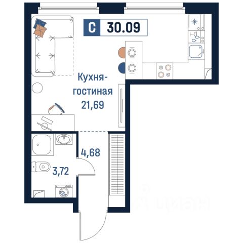 • ✅ Минимальная площадь: 20,4 м²