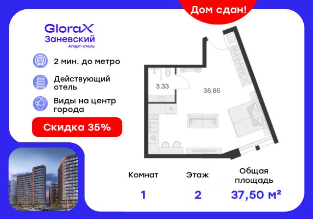 Продается апартамент-студия на 2-м этаже в сданном Апарт-комплексе бизнес-класса "GloraX Заневский". Ключи сразу! Общая площадь лота составляет 29,58 кв. м, из которых 24,32 кв. м отведено под жилую. Номер апартамента - 224. Преимущества: - Полная чистовая отделка - Возможность покупки меблировка и техника - Вход по ключ-карте - Прачечная на 1 этаже - Возможность дозаказа отельного сервиса - Программы доходности - Летний бар и променад - Воркаут площадка - Pet-friendly Апартаменты "GloraX Заневский" - проект бизнес-класса с развитой инфраструктурой, удовлетворяющей все потребности самых взыскательных гостей. Располагается в одном из наиболее перспективных, районов Петербурга в 2х минутах от метро "Ладожская" и в 10 минутах от Невского проспекта. В "GloraX Заневский" есть все, что необходимо для комфортной жизни, работы и отдыха. Инфраструктура, покрывающая все потребности и ожидания собственников и арендаторов. В радиусе 150 метров находятся супермаркеты с возможностью доставки продуктов прямо до дверей апартаментов. На 1000 кв. м. общественных пространств расположится уютный лобби-бар, ресторан мировой кухни на 80 человек и оборудованные коворкинги. В апартаментах "GloraX Заневский" выполнена современная отделка с использованием высококачественных экологичных материалов. В проекте предусмотрен подземный отапливаемый паркинг на 100 мест, куда можно спуститься на лифте прямо от дверей апартаментов. Узнайте подробности в Отделе продаж.