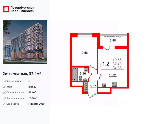 Строим кварталы для жизни с заботой о будущем. Предлагается 3-комнатная квартира комфорт-класса площадью 64,1 кв.м в корпусе 49 на 2-м этаже, в жилом комплексе "Новое Колпино".