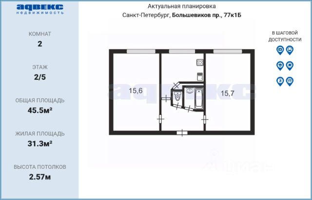 Продаётся 2к.кв. в ЖК ЛайнерЪ от застройщика Группа компаний "РСТИ" (Росстройинвест). Квартира находится в 17 этажном доме, в ЛайнерЪ на 2 этаже. Общая площадь квартиры 63,90 кв.м. Жилой комплекс "Лайнеръ" на Октябрьской набережной это дом с живописными видами на Неву, вантовый мост и новые кварталы Санкт-Петербурга. Авторский проект сочетает в себе стильные выразительные фасады с переменной этажностью, закрытый благоустроенный двор, разнообразные планировочные решения. В стилобатной части расположится просторный, теплый подземный паркинг. Из паркинга можно подняться на лифте на свой этаж, чтобы не нести покупки по лестнице. В доме представлен широкий выбор квартир от студий до трехкомнатных, в том числе уникальные лоты: квартиры с мастер-спальнями, квартиры-студии с двумя окнами и с возможностью зонирования, квартиры с окном в ванной, квартиры с террасами, квартиры с просторной кухней-гостиной 20-27 кв.м. Предлагаются варианты с чистовой, предчистовой (white box) отделкой и без отделки. "Лайнеръ" расположился в новом активно развивающемся районе Санкт-Петербурга, удобном с точки зрения транспортной доступности. Крупные развязки и наличие неразводного Большого Обуховского моста позволяют оперативно добираться до нужного места. Шопинг и развлечения тоже рядом 5-10 минут езды до огромного торгово-развлекательного комплекса, расположенного в Кудрово. Близость КАД обеспечит быстрый доступ в любую точку города и пригороды (Колпино, Шлиссельбург, Всеволожск и др.). В 15 минутах езды от жилого комплекса находятся 2 станции метро Пролетарская и улица Дыбенко.