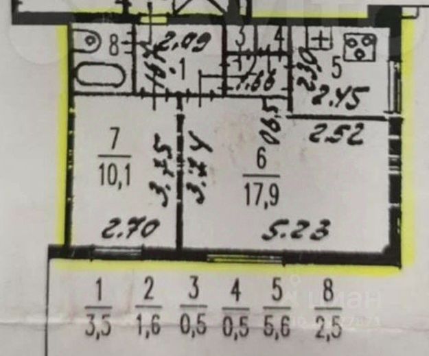 - площадь комнат: 15,63+10,83=26,5 кв.м.;