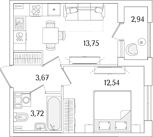 Почему это удачная находка? Это не просто метры, а продуманное евро-планировочное решение с двумя зонами: