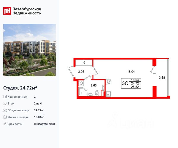 Цена действует при 100% оплате и на определенные ипотечные программы. Подробности — в отделе продаж по телефону. Продается студия в ЖК "Пулково Лейк" на 2 этаже. Общая площадь составляет 25.70 кв. м. Квартира с чистовой отделкой. Жилой комплекс "Пулково Лейк" располагается по адресу Санкт-Петербург, Московский. Пулково Лейк - проект малоэтажной застройки на берегу озера на границе Московского и Пушкинского районов. Дома высотой всего 4 этажа, квартиры от уютных студий до трехкомнатных квартир для большой семьи. Широчайший выбор планировок, включая квартиры с мастер-спальнями, патио, каминами, саунами, двухуровневые квартиры. Школа, детские сады, парк на берегу озера и выезды на Пулковское и Петербургское шоссе. Расположение: • 5 мин на авто до Аэропорта Пулково; • 10 мин на авто до станций метро "Московская; • 10-15 мин на авто до городов Пушкина, Павловска и Гатчины; • 20 мин на авто до центра Санкт-Петербурга. Квартиры в проекте сдаются с предчистовой и чистовой отделкой Соmfоrt Stоnе и Соmfоrt Wооd по современным стандартам - Вы можете сами выбрать отделку, подходящую именно Вам. Дома оборудованы самыми современными инженерными системами и "Умным домом". В рамках проекта будет построена современная школа на 925 мест и 2 детских сада на 160 и 240 мест, выезды на Пулковское и Петербургское шоссе, а также храм рядом со сквером "Пулковский рубеж". Общественное пространство вдоль берега озера превратится во всесезонный парк, в котором найдется место для любых активностей от пробежек, катания на САПах и велосипедах до отдыха в шезлонгах и любования закатом солнца. Зимой будет работать каток, проложен лыжный маршрут, предусмотрено место для новогодней елки и горок для детей. Для Ваших питомцев - площадка для выгула собак. Преимущества: • Высота потолков от 2,6 до 4,5 м; • Уникальные планировки; • Парк на берегу озера; • Система "Умный дом"; • Дворы без машин; • Колясочная в парадной; • Видеонаблюдение в холлах, на первом этаже, в лифтах и в паркингах. Успейте приобрести квартиру на выгодных условиях! Чтобы узнать подробности, обращайтесь за консультацией по телефону.