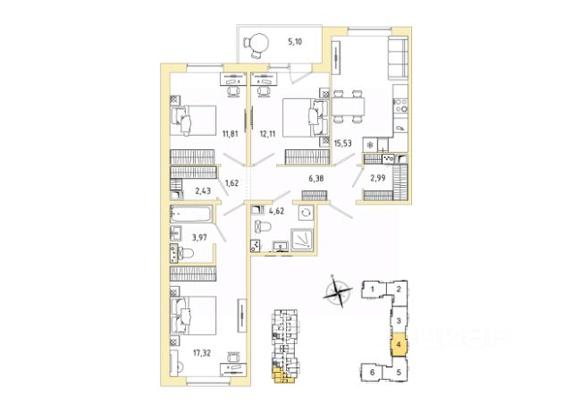 Продаётся 3 комнатная квартира 112 в ЖК IQ Гатчина, 5 оч., к. 3