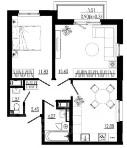 Продаётся 1-комнатная квартира в строящемся доме (Дом 19), срок сдачи: III-кв. 2026, общей площадью 37.57 кв.м., на 4 этаже. Новый жилой дом от застройщика "НК Развитие" расположен по адресу: Форносовское г.п, г.п.Форносово, ул.Круговая, уч. 19.