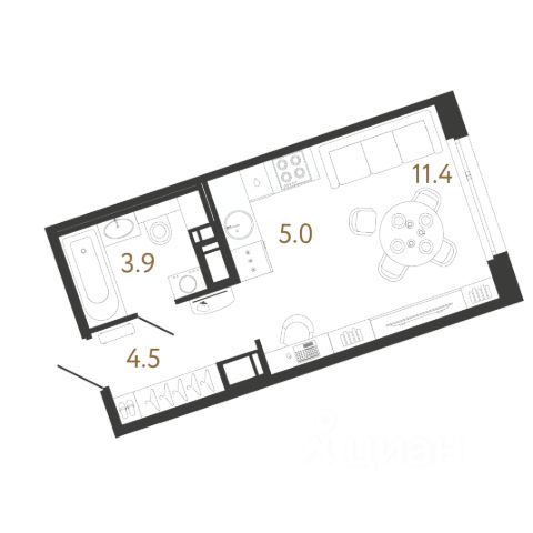 Планировка включает в себя кухню, просторную, светлую гостиную и изолированную спальню, санузел раздельный. Потолки 3.19 м.