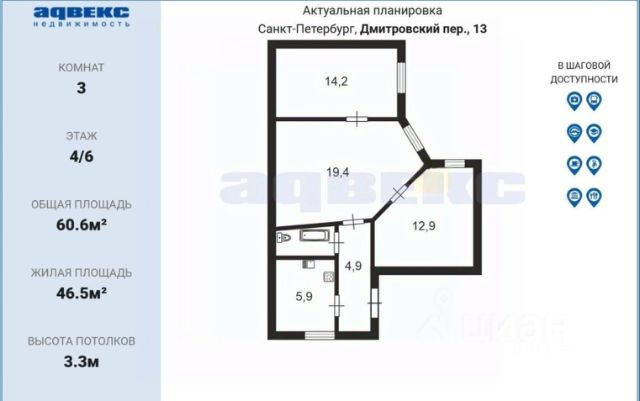 ID: 1916094 Продаётся 3-комнатная квартира в центре Санкт-Петербурга. Дом расположен на тихой улице в пешей доступности от метро — около 3 минут. До Невского проспекта можно дойти за несколько минут. При этом локация спокойная: без шумных заведений под окнами. Закрытый двор снижает уровень шума, в квартире тихо. Квартира с высокими потолками и сохранённым пакетом, большой ванной комнатой. Планировка удобная: просторная гостиная и две отдельные комнаты. Подойдёт для проживания семьи, обустройства кабинета или детской. Также объект интересен для инвестиции — центр города стабильно востребован для аренды. В квартире новая медная проводка, заменены трубы и батареи. Развитая инфраструктура: рядом метро, магазины, кафе, школы и всё необходимое для жизни. Центральная локация с высоким потенциалом сохранения и роста стоимости. Один взрослый собственник, в собственности больше пяти лет, без перепланировок и обременений.