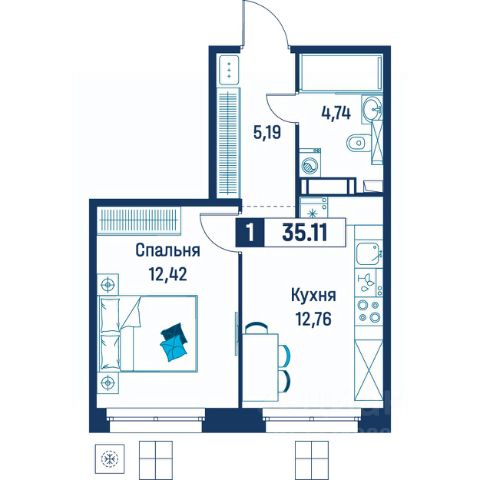 Продаётся 1-комнатная квартира в строящемся доме (Корпус 6), срок сдачи: III-кв. 2029, общей площадью 35.11 кв.м., на 5 этаже.