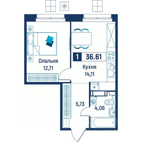Продаётся 1-комнатная квартира в строящемся доме (Корпус 6), срок сдачи: III-кв. 2029, общей площадью 36.61 кв.м., на 5 этаже.