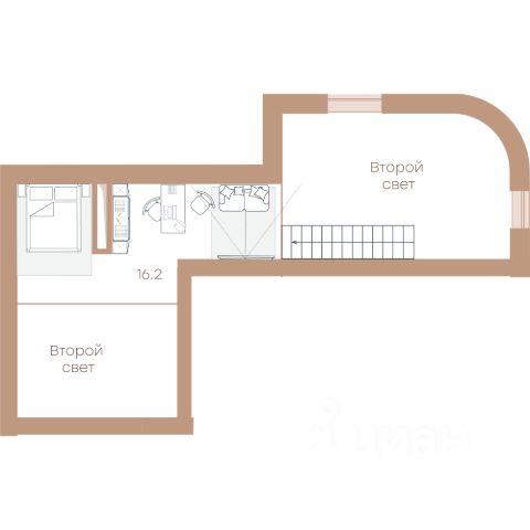 гостиная —16,3 м², проходная, светлая, с хорошей геометрией;