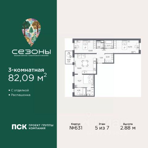 Продается 3-комн. квартира от застройщика с предчистовой отделкой в ЖК "Сезоны" на 5 этаже. Общая площадь: 82.53 кв.м., жилая: 38.18 кв.м., площадь просторной кухни-столовой: 22.14 кв.м. Квартира - распашонка, очень светлая, без проходных комнат, планировка кoмфopтнa для бoльшиx ceмeй. В квартире один балкон, один совмещенный и один раздельный санузел. Высота потолков 2.88 м. Дом монолитный, многоподъездный, высотой 7 этажей. Квартира находится в 1-й секции в корпусе 611. На этаже 4 квартиры. В подъезде 1 грузовой лифт. Начало строительства - 4 квартал 2025 года. Окончание строительства - 2 квартал 2028 года. Оформление сделки по договору долевого участия. Видовой жилой комплекс "Сезоны" от ГК ПСК возводится в одном из самых востребованных и престижных районов Санкт-Петербурга - Приморском, рядом с Суздальским и Выборгским шоссе. Такое расположение обеспечивает удобный выезд в разные части города, сочетая городской комфорт с близостью к природе. Всего в 50 метрах находится природный заказник "Новоорловский" и речка Каменка, а в пешей доступности - Суздальские озёра. Приморский район отличается развитой социальной и транспортной инфраструктурой. Здесь расположены крупные торговые и деловые центры, современные спортивные объекты, медицинские учреждения, магазины, кафе и рестораны. Комплекс включает четыре корпуса, ввод которых в эксплуатацию запланирован на 2028 год. Проект и прилегающий микрорайон разработаны в соответствии с концепцией "15-минутного города", при которой вся необходимая инфраструктура находится в шаговой доступности. В ближайшем окружении - две школы, пять детских садов, магазины, кафе, салоны красоты, банковские отделения и пункты выдачи заказов. Также предусмотрены два четырёхъярусных паркинга с лифтами на 288 машиномест. О застройщике ГК ПСК - один из крупнейших девелоперов Санкт-Петербурга с более чем 18-летней историей. Компания реализует проекты во всех сегментах недвижимости - от премиальных жилых комплексов до масштабных кварталов комфорт-класса и апарт-отелей. По данным портала ЕРЗ.РФ, ПСК входит в ТОП-3 крупнейших застройщиков Санкт-Петербурга по объёму текущего строительства. Портфель компании превышает 3 млн кв. м жилой и коммерческой недвижимости. Все объекты сдаются строго в срок и отличаются высоким уровнем архитектурных и инженерных решений. #270OwD
