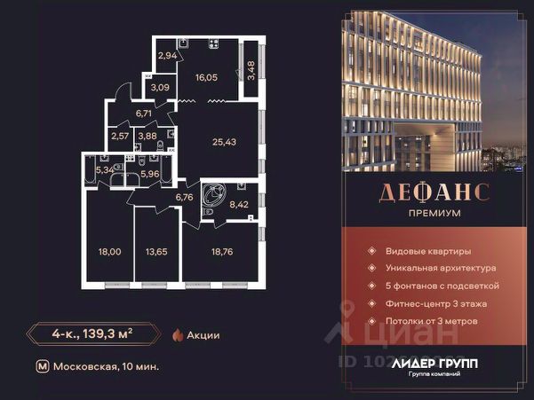 5 минут ходьбы до знаменитого Московского парка Победы