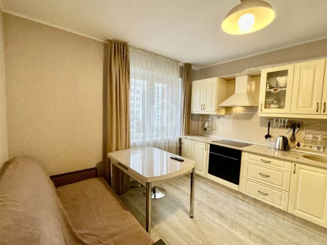 Квартира светлая и уютная, окна выходят на южную сторону, созданы все условия для комфортного проживания. Гостиная просторная, с удобной кухонной зоной.