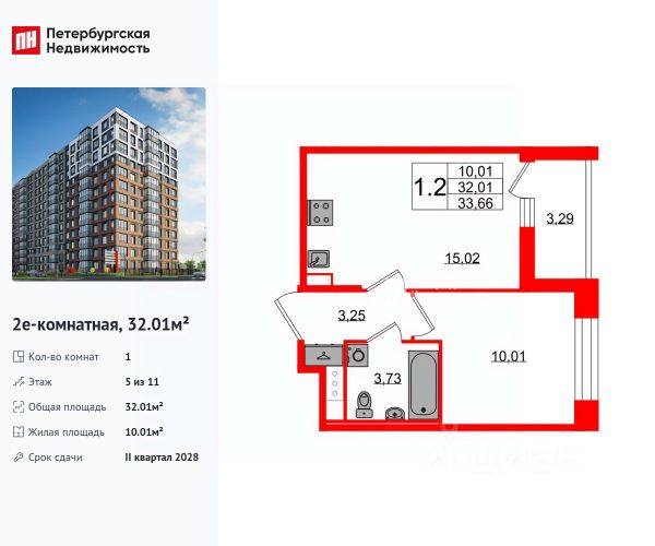 Продается уютная 1-комнатная квартира от застройщика в жилом комплексе "Астра Континенталь" в активно развивающимся Невском районе. До метро можно добраться пешком всего за 5 минут. Удобная, классическая, функциональная европланировка, большая кухня-гостиная 15.02 м², вместительная прихожая 3.25 м². Общая площадь квартиры - 32.01 м², жилая 10.01 м², высота потолка 2.77 м. Квартира продается с отделкой "Норд Лайн светлый плюс". Что особенного в ЖК "Астра Континенталь"? • Уникальная локация 400 метров до метро, 300 метров до благоустроенной набережной • Самодостаточный квартал со всей инфраструктурой в 3-х км от центра • Впечатляющий объем благоустройства: 30 000 кв. метров рекреационных зон с променадом и гейзерными фонтанами • Масштабный парк "Город Спорта"