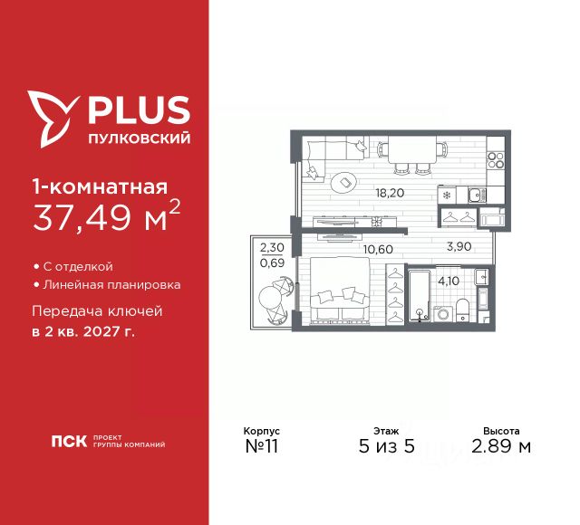 Продается 1-комн. квартира с отделкой в ЖК "PLUS Пулковский" на 5 этаже. Общая площадь: 38.38 кв.м., жилая: 11.1 кв.м., площадь просторной кухни-столовой: 17.7 кв.м. Квартира угловая, окна oбecпeчивaют paвнoмepнoe ocвeщeниe в тeчeниe дня. В квартире один балкон и одна лоджия, один совмещенный санузел. Высота потолков 2.89 м. Дом монолитный, трехподъездный, высотой 5 этажей. Квартира находится в 3-й секции в корпусе 13. На этаже 6 квартир. В подъезде 1 грузовой лифт. Начало строительства - 1 квартал 2026 года. Окончание строительства - 2 квартал 2027 года. Оформление сделки по договору долевого участия. Уютный пятиэтажный city квартал PLUS Пулковский расположен в престижном Московском районе на пересечении Пулковского и Волхонского шоссе в новом формирующемся микрорайоне. Рядом проходит одна из важнейших транспортных артерий города Пулковское шоссе, а в 10 минутах езды два въезда на КАД и въезд на ЗСД. Благодаря удобному и быстрому выезду на Пулковское шоссе, можно легко добраться до центра города за 35 мин. До станций метро "Московская" и "Купчино" - 15 мин. на машине, а до аэропорта Пулково - 17 мин. В составе квартала: 30 пятиэтажных домов, школа со спортивным стадионом, 2 детских сада с бассейнами, наземные и подземные паркинги, центральный зеленый бульвар с play hub и местами отдыха. Благоустройство квартала продумано до мельчайших деталей, в его основе - забота о качестве жизни каждого жителя. Дома возводятся по современной монолитной технологии строительства с вентилируемыми фасадами. Благодаря большим увеличенным окнам и отсутствию высокоэтажных домов, во всех квартирах максимальный объем естественного света. В составе квартала запланированы социально-значимые объекты: школа на 825 мест со спортивным стадионом и бассейнами, два детских сада с бассейнами на 220 мест каждый. Территория квартала зонирована таким образом, чтобы автомобильные и пешеходные потоки и не пересекались. Прогулочные и велосипедные дорожки отделены от автомобильных проездов зелеными насаждениями. Дворы закрыты для машин, что дает чувство дополнительной безопасности для жителей особенно, для самых маленьких. Вся территория квартала безбарьерная. Здесь нет пандусов, резких перепадов высот или неудобных ступеней. Вход в парадные с уровня земли. В каждом дворе есть своя оборудованная детская площадка. А в центре микрорайона расположится большая игровая площадка play hub с пространством для командных игр. PLUS Пулковский располагается в молодом микрорайоне, который сейчас находится в стадии активного развития. Он будет обладать собственной развитой инфраструктурой. В радиусе 15 минут езды на автомобиле располагаются многочисленные магазины, супермаркеты, спортивные, образовательные и медицинские учреждения, парки и достопримечательности. Для автомашин предусмотрены отдельно стоящий 5-ти этажный паркинг на 958 машино-мест, две подземные парковки на 367 машино-мест и наземные парковочные зоны по внешнему периметру микрорайона. #ZMf33t