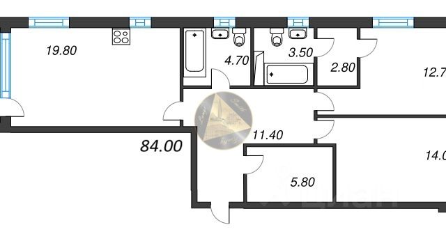 - раздельный санузел: Ванна, площадью 5.1. м2. Туалет, 2.5 м2, с гигиеническим душем и дополнительной раковиной.