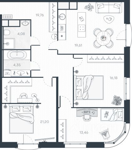 • ✅ Минимальная площадь: 16,1 м²