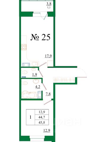 Продаётся 1 комнатная квартира 131 в ЖК IQ Гатчина, 5 оч., к. 2