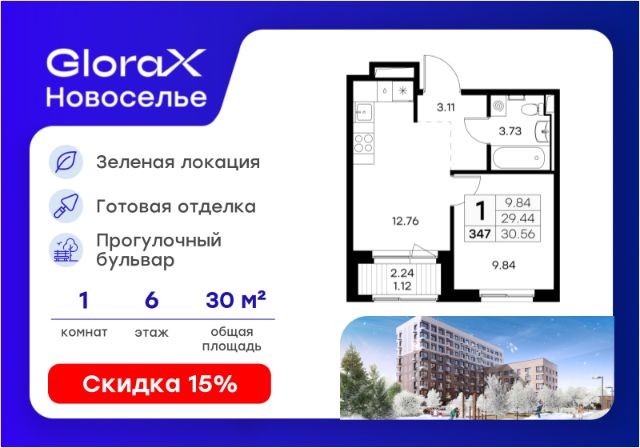 Продается 2-комн. квартира на 6-м этаже в строящемся проекте комфорт-класса GloraX Новоселье. Общая площадь лота составляет 46,11 кв. м, из которых 21,18 кв. м отведено под жилую и 13,53 кв. м под кухонную зону. Номер квартиры - 286 Преимущества квартиры: - Квартиры комфорт-класса с чистовой отделкой в двух цветовых гаммах на выбор - Зеленый район, 5 мин. до Гореловсого лесопарки, 10 мин. до Шунгеровского заказника - 7 мин. до КАД, 16 мин. до ЗСД - 864 м/м на открытой стоянке - Благоустроенный собственный прогулочный бульвар - Закрытые дворы с видеонаблюдением - Детские площадки с геопласткой и бизиборадми - Сад и школа в шаговой доступности - Спортивные площадки и вело-дорожки - Коммерческие помещения на 1 этажах GloraX Новоселье — новый проект комфорт-класса на юго-западной границе Санкт-Петербурга и Ленинградской области. Близость к зеленым зонам Гореловского лесопарка и природного Шунгеровского заказника, а также пешеходный многофункциональный бульвар в центре квартала — идеальное место для тех, кто ценит природу и тишину, при этом не готов отказываться от благ современной инфраструктуры. Застройка осуществляется в рамках единой концепции, предусматривающей не только создание комфортного жилья, но и формирование собственной внутренней благоустроенной среды. Территория каждого двора разделена на зоны отдыха, досуга и игровые площадки с учетом возраста и потребностей детей и взрослых создает неповторимую атмосферу, заряжающую энергией на новые свершения. Это проект, в котором спокойно во всех отношениях. Живите на природе, но с комфортом мегаполиса. Проведите теплые дни в Гореловском лесопарке. Познакомьте детей с историей в Стрельне, Петергофе или Красном селе. Они разположены в 30 минутах от проекта. До ж/д станции "Сергиево" 11 минут на автомобиле, до метро Проспект Ветеранов 20 минут, КАД 7 минут, ЗСД 16 минут. В шаговой доступности остановка общественного транспорта. Рядом с проектом будут построены школа и детский сад. Здесь все создано для максимального комфорта каждого жителя. Приватное пространство внутреннего двора с беседками для работы и отдыха, зеленый двор с уютным многоуровневым освещением, детскими эко-площадками и спортивными workout создает неповторимую атмосферу, заряжающую энергией на новые свершения. Цена указана при 100% оплате или стандартной ипотеке. Узнайте подробности в Отделе продаж.