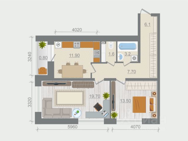 Продаётся 2-комнатная квартира в сданном доме (Корпус 1.1), срок сдачи: I-кв. 2026, общей площадью 62.27 кв.м., на 6 этаже.