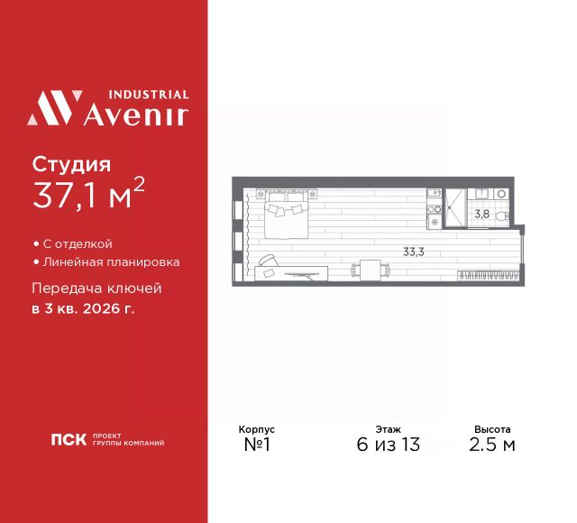 1-комн. апартаменты-студия от застройщика с отделкой в ЖК "Industrial AVENIR" на 6 этаже. Общая площадь: 25.7 кв.м., площадь гостиной 21.9 кв.м., из которых 5 кв.м. выделено под кухонную зону. Все окна выходят на одну сторону. В апартаментах один совмещенный санузел. Высота потолков 2.5 м. Апартаменты находятся в корпусе 1. Дом монолитный, одноподъездный, высотой 13 этажей. На этаже 64 квартиры. В подъезде 3 пассажирских и 3 грузовых лифта. Окончание строительства - 3 квартал 2026 года. Оформление сделки по договору долевого участия. В шаговой доступности от дома расположены станции метро (расстояние по прямой): "Кировский завод" (300 м), "Автово" (1.6 км), также недалеко от этого корпуса находятся станции метро: "Нарвская", "Ленинский Проспект", "Балтийская". 13ти этажное здание апарт-отеля строится по монолитной технологии. В номерном фонде 739 апартаментов, в том числе юниты с террасами и в формате "евро 2", офисные и коммерческие помещения, оборудованный коворкинг, подземный паркинг. На первом этаже лобби 160 кв.м. с рецепшн, выставочным пространством, кафе и гостевой зоной. Окончание строительства апарт - отеля - III квартал 2026 года. Оформление сделки по договору долевого участия. Семейная ипотека на апартаменты не распространяется. ОТДЕЛКА Все апартаменты сдаются с полной чистовой отделкой, выполненной в концептуальном индустриальном стиле. Стены оформлены обоями под покраску в сером оттенке. Одна из стен акцентная - с декоративной штукатуркой, имитирующей бетон. Элементы черного металла представлены в трековых светильниках, дверной фурнитуре и сантехнике. На полу уложен износоустойчивый ламинат с деревянной фактурой. Еще одним элементом индустриального стиля в отделке апартамента является крупноформатный керамогранит на полу и стенах санузла, имитирующий фактуру и цвет кортеновской стали. ЗD по шоу руму. РАСПОЛОЖЕНИЕ Апарт-отель Industrial Avenir строится в 300-х метрах от метро "Кировский завод" и "Путиловская" (открытие 2025 г) на центральной магистрали Кировского района проспекте Стачек. Близость развязок с ЗСД и КАД фактически снимает любые ограничения в осмотре пригородов и выбора направлений в личном туристическом плане на день. Предпосылкой для открытия пятого апарт-отеля сети Avenir - Industrial Avenir, стал высокий потенциал локации рядом с крупным производственным кластером, центральной магистралью Кировского района и шаговой доступностью от двух станций метро. Новый апарт-отель возводится рядом с первым апарт-отелем сети - Putilov Avenir, открытым в 2022 году. УПРАВЛЕНИЕ ДОХОДНОСТЬЮ Управлением номерным фондом Industrial Avenir займется структура ГК "ПСК" PSK Invest, входящая в пятерку крупнейших управляющих компаний апарт-отелями в Санкт-Петербурге. Купить апартаменты в Industrial Avenir возможно сразу с управлением, заключив договор с УК PSK Invest и, тем самым, приобрести готовый арендный бизнес. Апартаменты недвижимое имущество, которое является вашей собственностью, и вы капитализируете свои вло