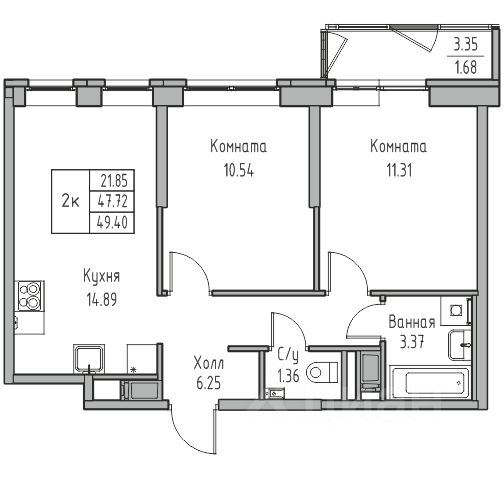 Функциональная свободная планировка позволяет разместить 3 спальни, одной из которых может быть мастер-спальня , кабинет или детскую комнату и просторную кухню-столовую, 2 санузла, хозяйственную комнату и гардеробную.
