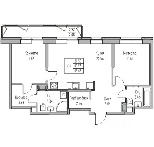 При входе у вас будет просторная круглая видовая гостиная площадью 43 м², залитая солнечным светом благодаря трём большим оконным проёмам. Из окон открывается вид на набережную р.Карповки, Иоанновский монастырь, перспективу Крестовского острова. На другой стороне Карповки находится комплекс домов бизнес-класса.