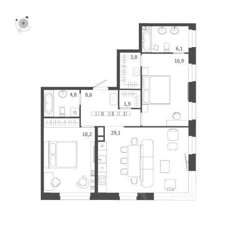 Продается квартира 241, по адресу г. Санкт-Петербург, улица Профессора Попова, дом 47, литера А, корпус Корпус 3 в ЛДМ на 6 этаже, с площадью 83.8 м2.