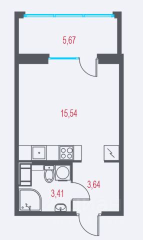 Общая площадь - 24,53 кв. м. (балкон не включён в метраж)