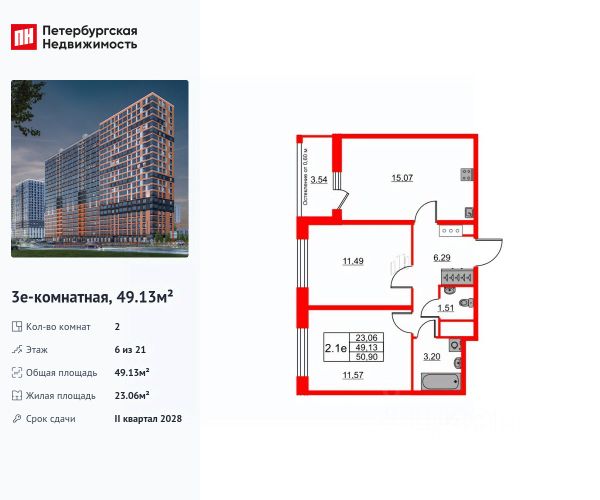 Продается уютная 2-комнатная квартира от застройщика в жилом комплексе "Город звезд" в новом городе на правом берегу Невы. До метро можно добраться на транспорте всего за 13 минут. Мастер-спальня с собственной ванной комнатой. Самое приватное пространство в вашей квартире. Уникальная, функциональная европланировка, большая кухня-гостиная 17.18 м², вместительная прихожая 5.47 м². Общая площадь квартиры - 52.62 м², жилая 23.83 м², высота потолка 2.77 м. Квартира продается с отделкой "NORD LINE SILVER". Что особенного в ЖК "Город звезд"? • Инновационный Лицей Setl с оригинальной архитектурной концепцией и уникальной образовательной средой • Невский лесопарк под окнами - всегда свежий воздух и полноценный отдых на природе • Четыре тематические площади отдыха с разнообразным благоустройством • Аллея Звёзд - променад протяженностью 5 км с ландшафтным озеленением, зонами отдыха и велодорожкой • Выход на набережную реки Утки, где можно порыбачить или взять напрокат лодку • Единая входная группа с ресепшен и подземный паркинг