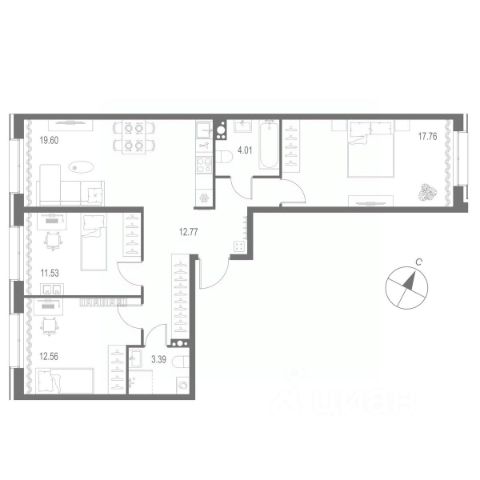 Продается квартира 78, по адресу г. Санкт-Петербург, Адмиралтейский район, набережная реки Пряжки участок 18 (севернее дома 7а, литера А), корпус Мариинка Deluxe в Мариинка Deluxe на 6 этаже, с площадью 96.3 м2.