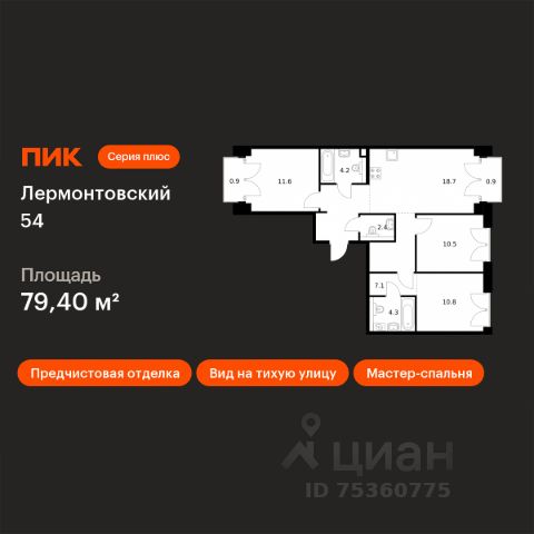 Продаётся 2-комн. квартира площадью 53,9 кв.м на 6 этаже 9 этажного дома (Корпус 2.1, Секция 6) проекта ПИК Лермонтовский 54. Светлый просторный подъезд на уровне земли, функциональная планировка, большие окна, без отделки. "Лермонтовский 54" находится в центре Санкт-Петербурга на набережной Обводного канала, в 5 минутах пешком от метро "Балтийская". Здесь будут квартиры с окнами в пол, высокими потолками и террасами. Жилой квартал находится в центре Санкт-Петербурга, в Адмиралтейском районе, на набережной Обводного канала. В 5 минутах пешком - станция метро "Балтийская". До Невского проспекта на автомобиле ехать 8 минут, до Московского проспекта - всего 2 минуты. Необычные фасады "Лермонтовского 54" напоминают о промышленной архитектуре, которая была популярна в Санкт-Петербурге в конце XIX и начале XX века. Материал отделки - прочный кирпич, который прослужит до 100 лет. А благодаря системе чиллер-фанкойл на фасадах не будет блоков кондиционеров - всё охлаждение происходит внутри здания. В "Лермонтовском" возводятся дома высотой от 7 до 9 этажей с небольшим количеством квартир: на этаже может быть всего две квартиры. Во дворах будут закрытые парки с детскими площадками и местами для отдыха, а на подземном этаже - паркинг с удобной навигацией. Между домами протянется пешеходный бульвар для прогулок и отдыха, для велосипедистов предусмотрены специальные дорожки и парковки. В 2024 году в "Лермонтовском 54" открылся лицей на 1000 мест. Он разместился в здании 1824 года - раньше здесь было Николаевское кавалерийское училище. Во всех квартирах будут трёхметровые потолки и окна в пол. На первых этажах откроются магазины, кафе и другие сервисы. Со стороны набережной в домах, которые признаны объектами культурного наследия, мы разместим общественные пространства. Недалеко от "Лермонтовского 54" находится Юсуповский дворец, парк Екатерингоф, на машине можно доехать до острова Новая Голландия и Мариинского театра. Рядом работают школы, детские сады, торговые центры и гипермаркеты. Артикул 921274 (Застройщик ООО "СПЕЦИАЛИЗИРОВАННЫЙ ЗАСТРОЙЩИК "АЛЬМАНДИН") [cn_sbp_1464165]