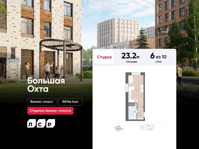 Продаётся студия в ЖК "Большая Охта" на 6 этаже. Общая площадь составляет 30.20 кв. м. Квартира с white box отделкой. Жилой комплекс "Большая Охта" располагается по адресу Санкт-Петербург, Красногвардейский. "ЛСР. Большая Охта" - проект бизнес-класса, в Красногвардейском районе между Якорной и Партизанской улицами, рядом с центром Петербурга. Престижный комплекс с удобной пешеходной и транспортной доступностью. Особенности квартиры высокие потолки и увеличенные окна. Горизонтальная разводка труб водоснабжения и отопления и вынесенные в холлы счетчики сохранят эстетичный дизайн комнат. Встроенные клапаны инфильтрации воздуха будут поддерживать чистоту и свежесть воздуха. Расположение: • 8 мин на авто до станции метро "Новочеркасская"; • 10 мин на авто до станции метро "Ладожская"; • 10 мин на авто до Таврического сада и исторического центра города; • 13 мин на авто до станции метро "Чернышевская"; • 25 мин на авто до КАД. Пространство внутри комплекса разделено на функциональные зоны: тематические, спортивные, уединенные. Все площадки окружают взрослые хвойные и лиственные деревья, подобранные с учетом роста, эстетики и сезонного цветения. Расширенная инфраструктура комплекса продумана до мелочей. Внутри квартала есть все необходимое для жизни с комфортом и удовольствием - детские сады и школы, магазины, площадки для спорта и отдыха, фитнес-залы, модные кофейни и общественные летние веранды. Преимущества: • Подземный паркинг и кладовые помещения; • Двор без машин; • Система "Умный дом" (в т.ч. управление домофоном со смартфона); • Пост охраны и консьерж; • Индивидуальный тепловой пункт; • Колясочные в каждой парадной; • Зарядка для электромобилей. Успейте приобрести квартиру на выгодных условиях! Чтобы узнать подробности, обращайтесь за консультацией по телефону.