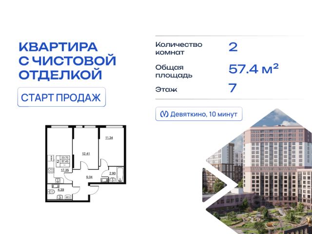 Продаётся 2-комн. квартира площадью 53,11 кв.м на 7 этаже 15 этажного дома (Корпус 5, Секция 1) проекта ПИК Заречный парк. Светлый просторный подъезд на уровне земли, функциональная планировка, большие окна, c отделкой. Жилой квартал "Заречный парк" расположен в районе Новое Девяткино Ленинградской области. В 7 минутах на автомобиле - станция метро "Девяткино", до КАД - 10 минут на машине. В 2026 году будет достроена шестиполосная трасса в обход Мурино, примыкающая к Пискарёвскому проспекту. Она станет дополнительным выездом на КАД для жителей "Заречного парка". Проект включает восемь домов высотой от 15 до 24 этажей, три многоуровневых паркинга, детский сад и школу. В зелёных дворах-парках будут оборудованы современные детские и спортивные площадки, обустроены места для отдыха. На первых этажах разместятся магазины, кафе и другие сервисы. Планировки продуманы так, чтобы каждый квадратный метр жилой площади можно было эффективно использовать. Все квартиры сдаются с готовой отделкой. Артикул 1021718 (Застройщик ООО "СПЕЦИАЛИЗИРОВАННЫЙ ЗАСТРОЙЩИК ИНВЕСТАЛЬЯНС") [cn_sbp_1829950]