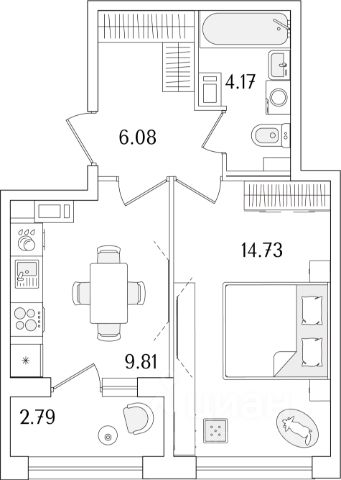 -Два санузла: гостевой (2,4 кв. м) и основной (4,2 кв. м).