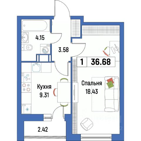 В продаже — уютная и компактная студия (21,2 м²) на 7 этаже корпуса 1.3 в новом жилом комплексе "Академик" от надёжного застройщика Холдинга "РСТИ" (Росстройинвест).