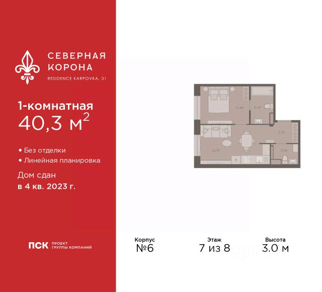 Четырехкомнатная квартира в ЖК "Северная корона" на 7 этаже. Квартира без отделки, после оформления собственности можно делать ремонт. Общая площадь: 120.7 кв.м., жилая: 43.63 кв.м., площадь просторной кухни-столовой: 21.98 кв.м. Угловая квартира, идеально подойдет любителям тишины и панорамных видов. В квартире один балкон, три совмещенных и один раздельный санузел. Наличие в квартире террасы площадью 32.26 кв.м. открывает возможность для обустройства дополнительной площади. Высота потолков 3.0 м. Квартира находится в корпусе 7.2. Дом монолитный, одноподъездный, высотой 8 этажей. На этаже 4 квартиры. В подъезде 1 грузовой лифт. Строительство окончено, дом сдан в 4 квартале 2023 года. Оформление сделки по договору купли-продажи. В шаговой доступности от жилого комплекса имеются станции метро (расстояние по прямой): "Петроградская" (500 м), "Чкаловская" (1.3 км), "Горьковская" (1.7 км), "Чёрная речка" (1.7 км), также недалеко от этого корпуса расположены станции метро: "Чернышевская", "Спортивная". Премиальный жилой комплекс "Северная корона" расположился в парадной части Петроградской стороны на пересечении ее главного проспекта — Каменноостровского и набережной реки Карповки. Двухсотметровое парадное лобби, дизайнерский ландшафт, собственная фитнес-студия, парадная гостиная для встреч и переговоров, игровой клуб для детей. А также: системы очистки и подготовки воды и воздуха, консьерж-сервис, бесключевой доступ, помещения для ожидания и многое другое. Архитектура премиального дома "Северная корона" — это современное воплощение и новое развитие архитектуры северного модерна. Особенность и уникальность дома в его протяженности вдоль реки Карповки. Фасад исключает монотонность, линии интегрированы в канву курдонера и внутренних общественных пространств, обращённых как в сторону Каменноостровского проспекта, так и Иоановского монастыря. Все квартиры в полной мере можно назвать видовыми они открыты историческому окружению и ландшафтной архитектуре. Что дарит владельцам единственные в своем роде захватывающие виды. Этажность: 4 - 9 этажей (в т.ч. 1 подземный) Дом СДАН. Класс проекта: Премиум класс Уникальность проекта: - Французские балконы - Видовые квартиры - Панорамное остекление - Потолки до 3,5 метров - Мансардные окна - Индивидуальные сплит шахты - Считывание номеров автомобилей - Современная архитектура и инженерия - Двор парк - Центральное лобби 200 кв.м. #2MBTbM