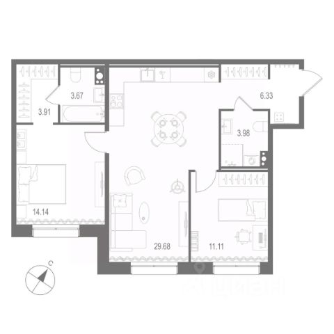Продается квартира 39, по адресу г. Санкт-Петербург, Адмиралтейский район, набережная реки Пряжки участок 18 (севернее дома 7а, литера А), корпус Мариинка Deluxe в Мариинка Deluxe на 7 этаже, с площадью 102.7 м2.