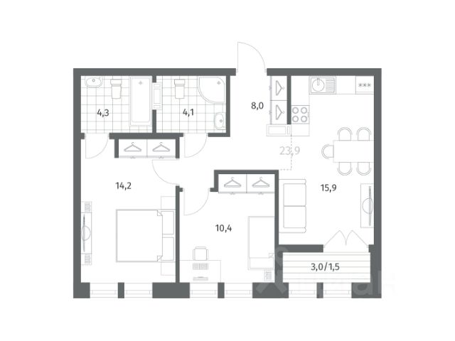 Двухкомнатная квартира от застройщика с предчистовой отделкой в ЖК "Брусника в Новоселье" на 7 этаже. Общая площадь: 58.83 кв.м., жилая: 25.5 кв.м., площадь просторной кухни-столовой: 20.1 кв.м. Комнаты изолированные, все окна выходят на одну сторону. В квартире один балкон, один совмещенный санузел. Высота потолков 2.7 м. Дом монолитный, многоподъездный, высотой 9 этажей. Квартира находится в 4-й секции в корпусе 1. На этаже 8 квартир. В подъезде 1 пассажирский и 1 грузовой лифт. Начало строительства - 1 квартал 2026 года. Окончание строительства - 2 квартал 2027 года. Оформление сделки по договору долевого участия. Новоселье — это городской поселок в Ломоносовском районе Ленинградской области. Он расположен в 5 км к югу от Финского залива, на самой границе региона. Вдоль поселка проходит Кольцевая автомобильная дорога, а сразу за ней начинается Санкт-Петербург — Красносельский район и Стрельна. Район зелёный и тихий, с разных сторон его окружают Шунгеровский заказник, Гореловский лес и дачные поселки. Есть вся необходимая инфраструктура: уже построенные детские сады, школы, клиники, торговые центры, ледовая арена. Так Новоселье сочетает в себе все преимущества городского комфорта и размеренной жизни рядом с природой. До выезда на КАД 5 минут, до ст. м. Ленинский проспект - 25 минут на а/м, до аэропорта Пулково - 30 минут на а/м. Брусника построит в Новоселье семь домов, в том числе башни и дома с разноуровневыми секциями. Высота зданий — от 8 до 12 этажей. Проект разделен на три очереди, на первом этапе мы возведём три дома в западной части квартала. В основе архитектурной концепции "Брусники в Новоселье" лежит лаконичность силуэтов и внимание к деталям. Мы разработали три фасадные темы, в основе которых лежит один прием — вертикальные и горизонтальные членения, реализованные за счет остекления балконов и лоджий, переменной этажности и цветового дробления фасадов. Выразительность последних достигается за счёт симметрии и использования декоративных элементов — карнизов и рамок вокруг окон. Входные группы мы заглубим относительно основной линии фасада, чтобы подчеркнуть входы в ритейл и места общего пользования. Материалы отделки будут приближены к натуральным. Первые этажи домов мы облицуем плиткой, имитирующей клинкерный кирпич. Кроме того, в проекте много террас, и все они разные: на первых этажах, на последних, угловые, с прямым фронтоном. Они расширяют пространство квартир и связывают их с природным контекстом. #Zme4Fa