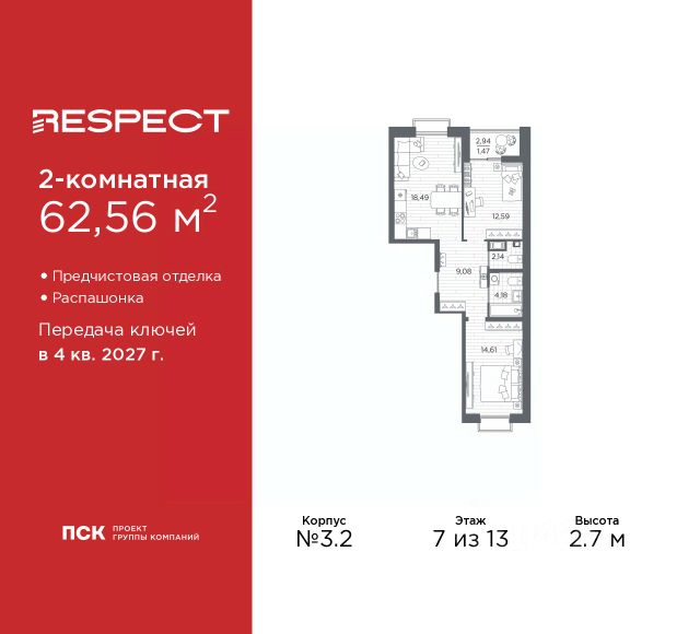Просторная 2-комн. квартира с предчистовой отделкой в ЖК "RESPECT" на 7 этаже. Общая площадь: 55.16 кв.м., жилая: 24.4 кв.м., площадь просторной кухни-столовой: 15 кв.м. Квартира без проходных комнат, окна выходят нa три cтopoны дома. В квартире один балкон, один совмещенный и один раздельный санузел. Высота потолков 2.7 м. Квартира находится в корпусе 2. Дом монолитный, одноподъездный, высотой 7 этажей. На этаже 4 квартиры. В подъезде 1 пассажирский и 1 грузовой лифт. Окончание строительства - 1 квартал 2026 года. Оформление сделки по договору долевого участия. В шаговой доступности от жилого комплекса имеются станции метро (расстояние по прямой): "Лесная" (800 м), "Площадь Мужества" (1.4 км), "Выборгская" (1.9 км), также недалеко от этого корпуса находятся станции метро: "Академическая", "Политехническая". Квартал строится на Полюстровском пр, 87, в одной из самых востребованных локаций Петербурга. В 10 минутах пешком - метро "Лесная" и в 10 минутах на транспорте - Петроградская сторона. Высота домов от 7 до 13 этажей. На территории Respect строится школа на 1125 учащихся и детский сад на 240 мест. Запроектированы собственная газовая котельная, закрытая территория, дворы без машин и подземные паркинги с лифтами. Вентилируемые фасады облицованы клинкерным кирпичом. Дома из этого материала служат веками, являясь гордостью хозяев. Дизайн парадных зон и входных групп - сочетание лаконичности отделки и декоративных элементов с текстурами из натурального камня и дерева с приглушенной подсветкой теплым светом. Во входных группах расположены гостевые зоны с мягкой мебелью. Вся территория квартала будет связана единой концепцией благоустройства, разработанной ландшафтным бюро L.BURO. В основе - идея создания увлекательного ландшафтного пространства для насыщенной жизни, включающего в себя пейзажные зоны, современные архитектурные композиции, открытые террасы на стилобатах с зонами отдыха и парклетами, спортивными площадками. Это пространство для людей всех возрастов и различных увлечений. На эксплуатируемой кровле на уровне первого этажа в домах 1 и 4 будут обустроены общественные видовые террасы. В квартале запроектированы внутренние закрытые территории дворов домов без доступа автомобилей и безбарьерная среда для велосипедистов и колясок. Предусмотрены IP-домофония с функцией дистанционного открывания калиток и парадных, а также дистанционный сбор показаний счетчиков и мобильное приложение для жителей. Для безопасности жителей квартала - круглосуточное видеонаблюдение и служба охраны. В каждой квартире предусмотрены внешние корзины для кондиционеров. #zmbaae